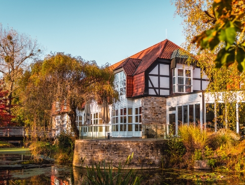 Umgeben von Natur und Geschichte lädt das MMI dazu ein, Wissen zu vertiefen, Inspiration zu finden oder gemeinsam zu feiern. Insgesamt stehen 13 unterschiedlich große Räumlichkeiten zur Verfügung – je nach Bestuhlung für 8 bis 180 Personen. Wer über Nacht bleiben möchte, findet im Haus 67 modern ausgestattete Zimmer – perfekt, wenn aus einem Seminartag ein inspirierender Austausch am Abend wird. Für Genuss, geselliges Beisammensein und Festlichkeiten sorgen Restaurant, Bar und besondere Locations wie Kaminzimmer oder unsere Kornscheune. Und auch die Anreise ist entspannt. Im MMI stehen rund 150 kostenlose Parkplätze zur Verfügung. 77 Stellplätze mit 18 Ladesäulen befinden sich in der hauseigenen Tiefgarage.