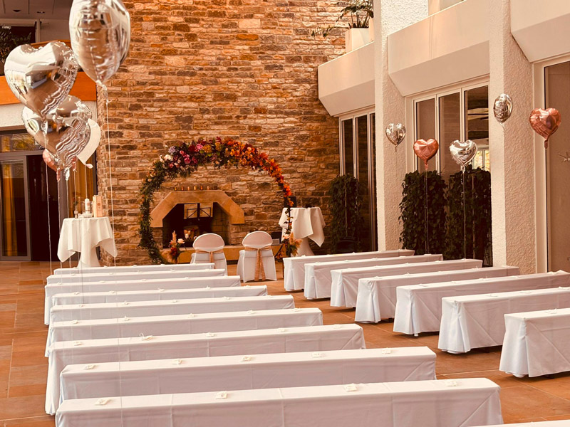 Sie möchten einen Sektempfang im Anschluss, einen kleinen Bereich nur für die engste Familie oder ein Setting, das „ganz nach Ihnen“ aussieht? Sagen Sie uns, was Sie vorhaben – wir denken mit und sorgen dafür, dass sich Ihr Tag rund anfühlt.
